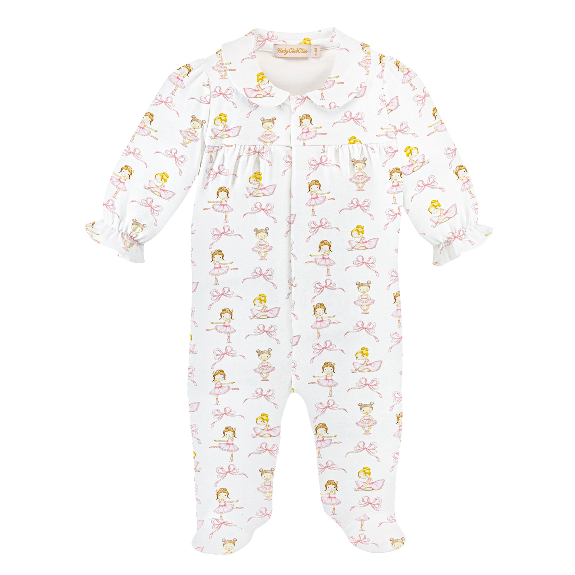 Indulge in this Petit Dancer Printed Footie with a darling round collar. Made from 100% Peruvian Pima Cotton interlock, this footie boasts a beautiful and delicate design, ensuring comfort and style for your little one. Elevate your baby's wardrobe with this luxurious piece.