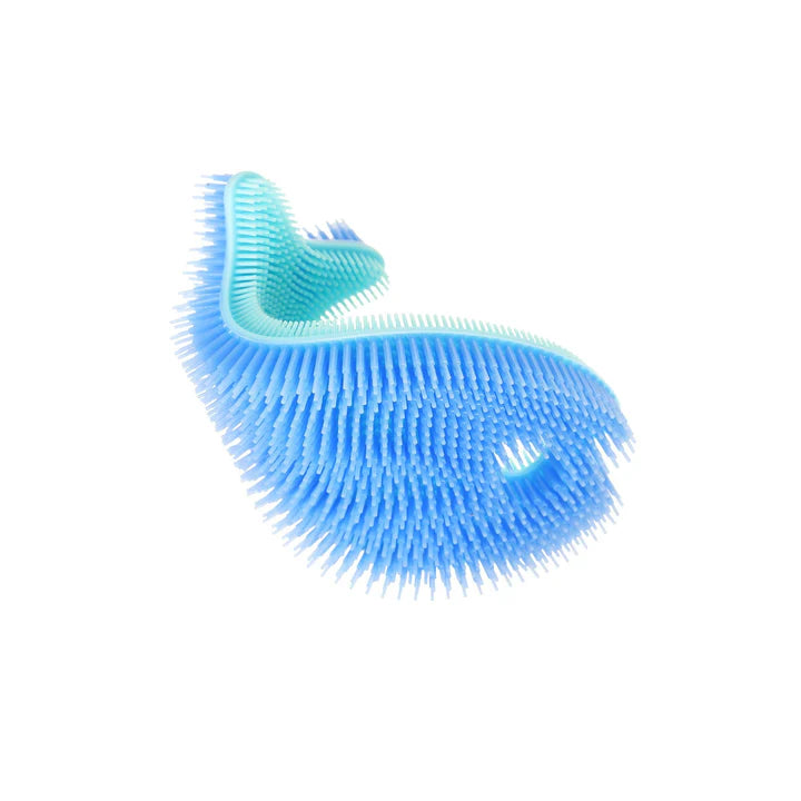 Our Award Winning Bathin’ Smart Silicone Bath Scrub gently washes and massages baby’s scalp, creating a calming and therapeutic bath time experience. Made from 100% Silicone, it is naturally resistant to mold and is even dishwasher safe (no more stinky washcloths)! The Unique double sided scrub features shorter strands on one side, great for massaging cradle cap, and longer strands for scrubbing on the reverse. The grow-with-me bath scrub also doubles as a quiet and mess free fidget toy for kids ages 6 years and up.