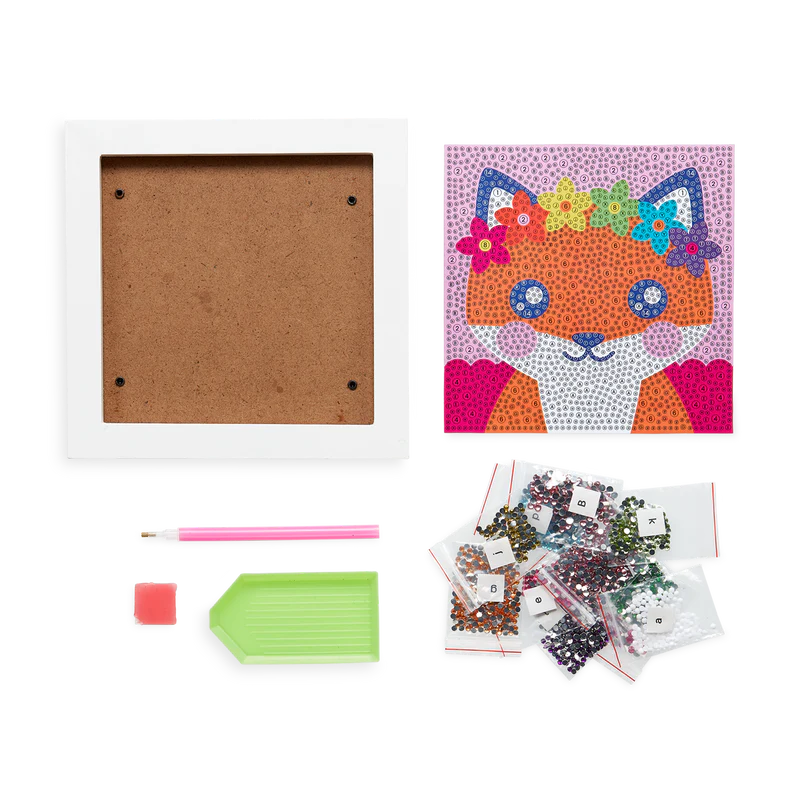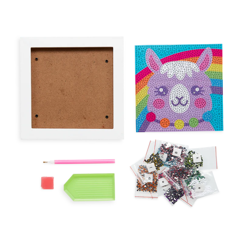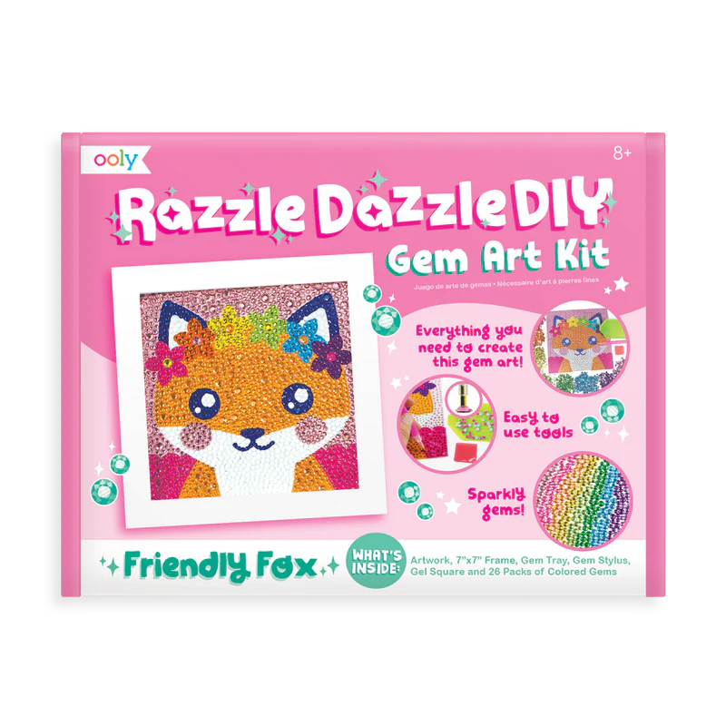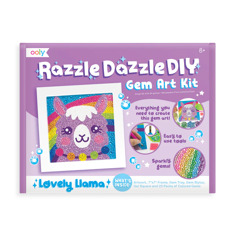 Dazzle your friends with this colorful gem art kit. This Razzle Dazzle DIY Gem Art Kit lets you create sparkly gem enhanced artwork. This kit includes everything you need to create beautiful gem art, including a white standing frame.
