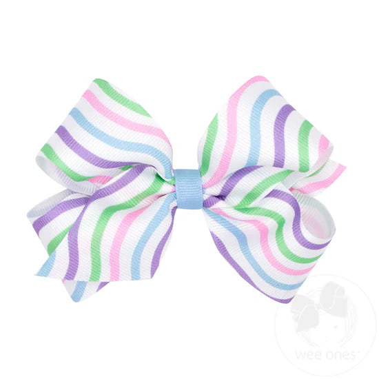Medium Grosgrain Hair Bow with Spring Stripe Print
