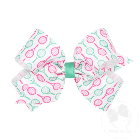Medium Racket Print Country Club-Inspired Grosgrain Hair Bow