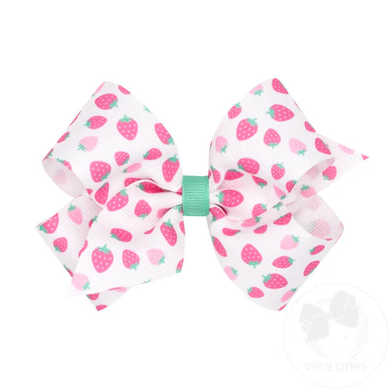 Medium Strawberry Print Country Club-Inspired Grosgrain Hair Bow