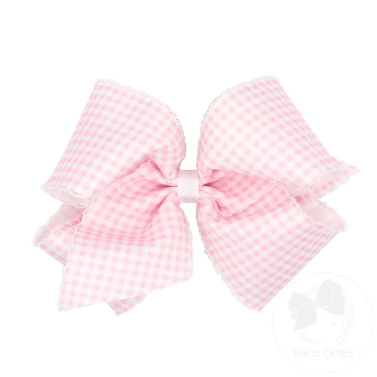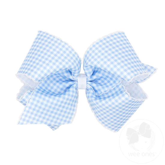 King Gingham Print Grosgrain Girls Hair Bow With Moonstitch Edge