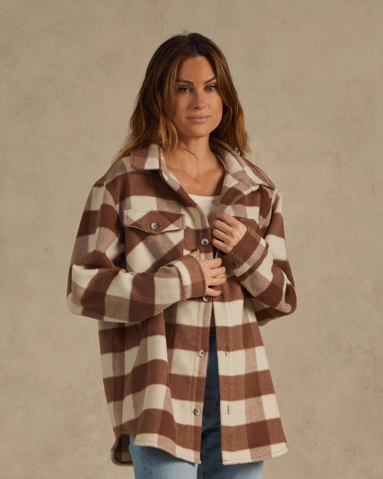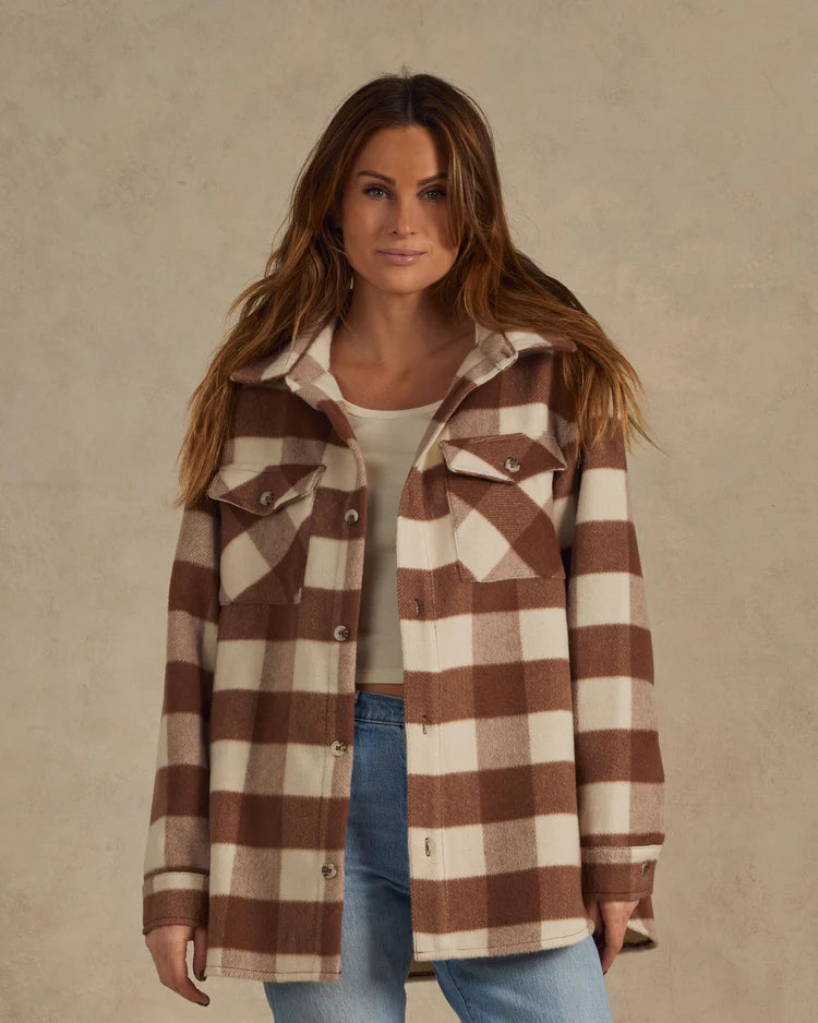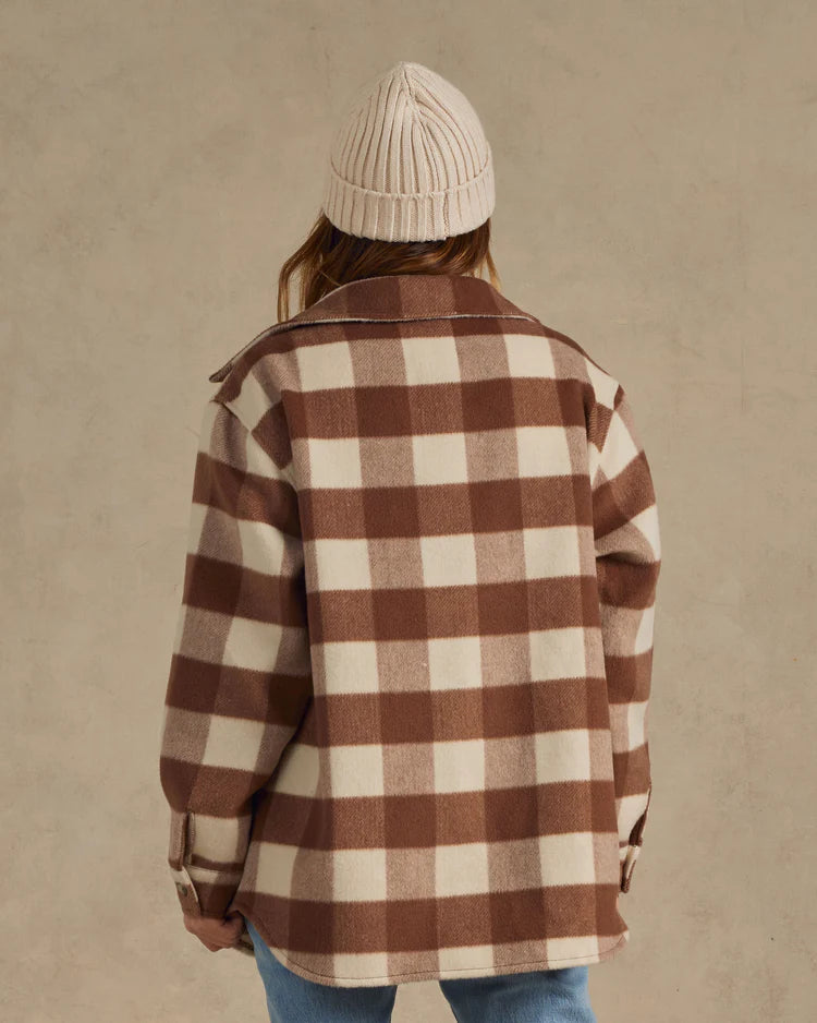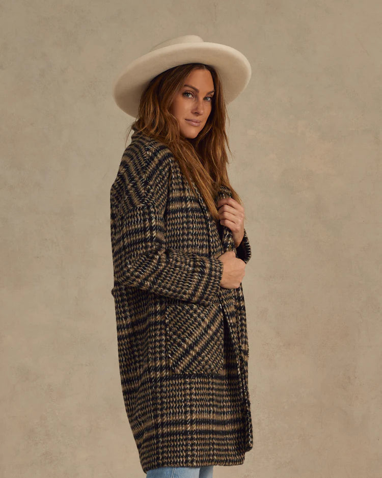 Rylee + Cru Longline Coat | Brown Houndstooth