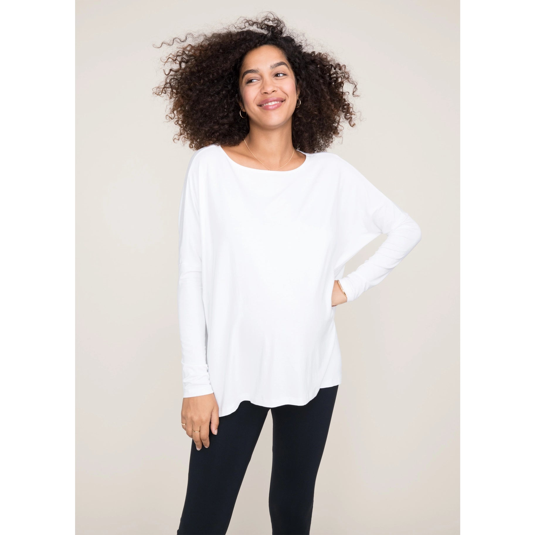 Fresh and modern with slim-fit sleeves and a classic crewneck—roomy enough to blanket the goods but still feels like your favorite flattering tee. Perfect with jeans,shorts, or under a light jacket.