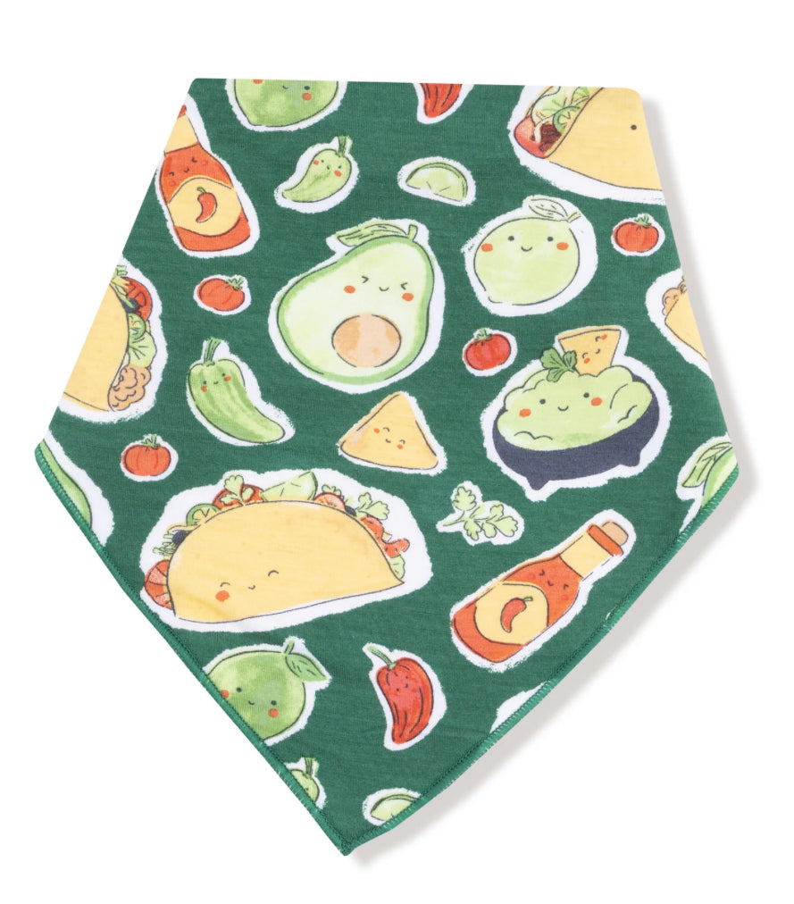 Introducing the Happy Tacos Bandana Bib - the perfect accessory for messy eaters! Made with our signature Happy Tacos design, this bib is not only stylish but also functional. Keep your little one clean and dry with our absorbent and soft bandana bib. Perfect for mealtime or on-the-go snacking.