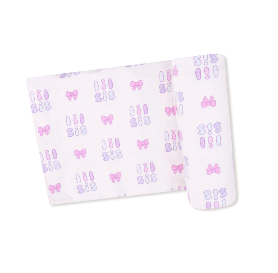Introducing the Lil Sis Swaddle Blanket - the perfect way to keep your little one cozy and secure. With its soft and breathable fabric, your baby will sleep soundly while being snuggled up in this adorable swaddle. Say goodbye to restless nights and hello to sweet dreams with the Lil Sis Swaddle Blanket.