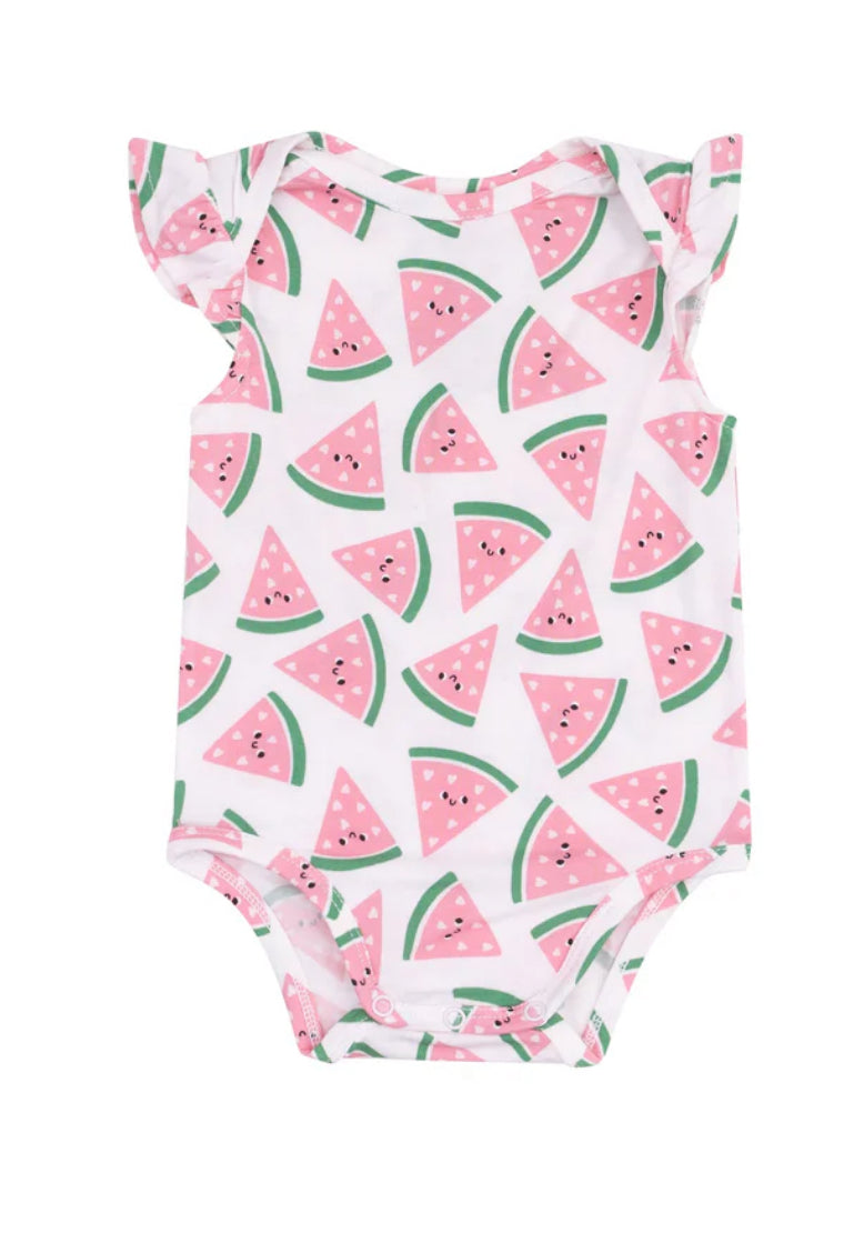 Watermelon Hearts Ruffle Sleeve Bodysuit