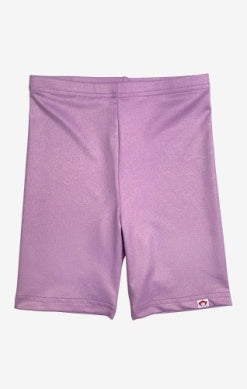 These sporty biker shorts will keep your little one moving and grooving all season long. Featured in a sparkly Lavender colorway with a supportive waistband