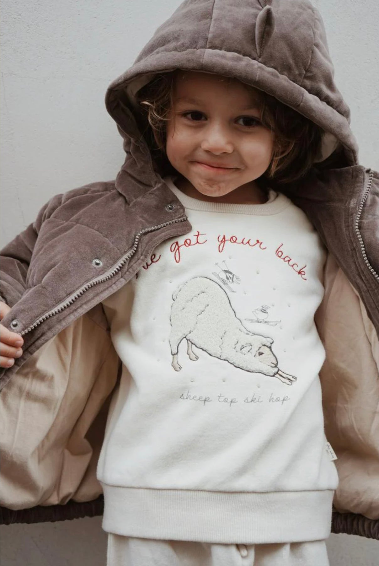 Jacket made in 100 percent recycled polyester. Designed with embroidered details, side pockets, zipper, snap buttons and a practical hanger loop. Features a detachable hood, one with dinosaur spikes