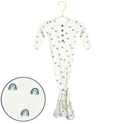 The easiest tie-bottom outfit for day or night. Made for hassle free diaper changes and gentle dressing, I designed this with a button-down front and tie bottom for simple closure (no more snaps at 2am!). Fold over wrist cuffs are the most thoughtful finishing touch.