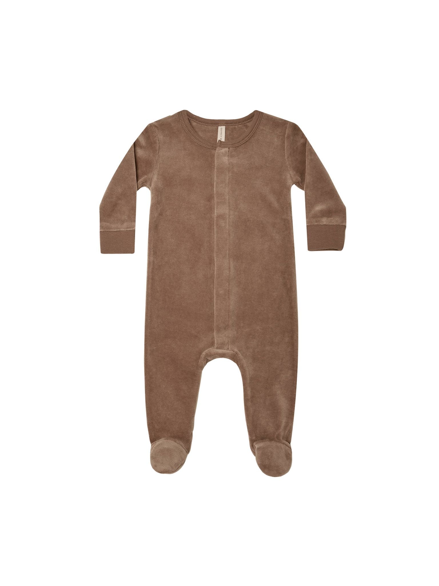 Quincy Mae Velour Hidden Snap Footie | cocoa