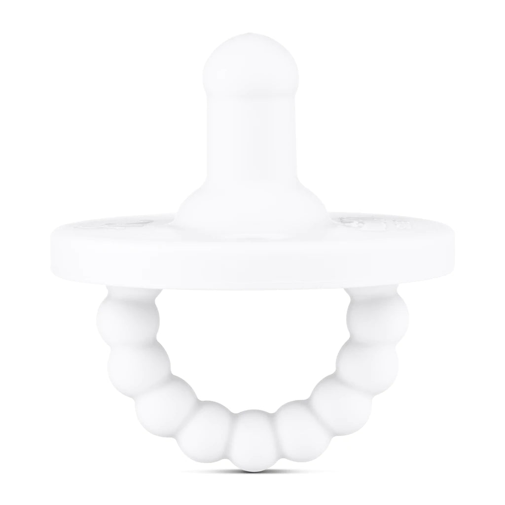 Cutie PATs are unlike any other pacifier and/or teether on the market. The Cutie PAT was created with a dual purpose in mind: the pacifier side was created to soothe an infant/baby, and the teether portion was developed to aid with teething relief.