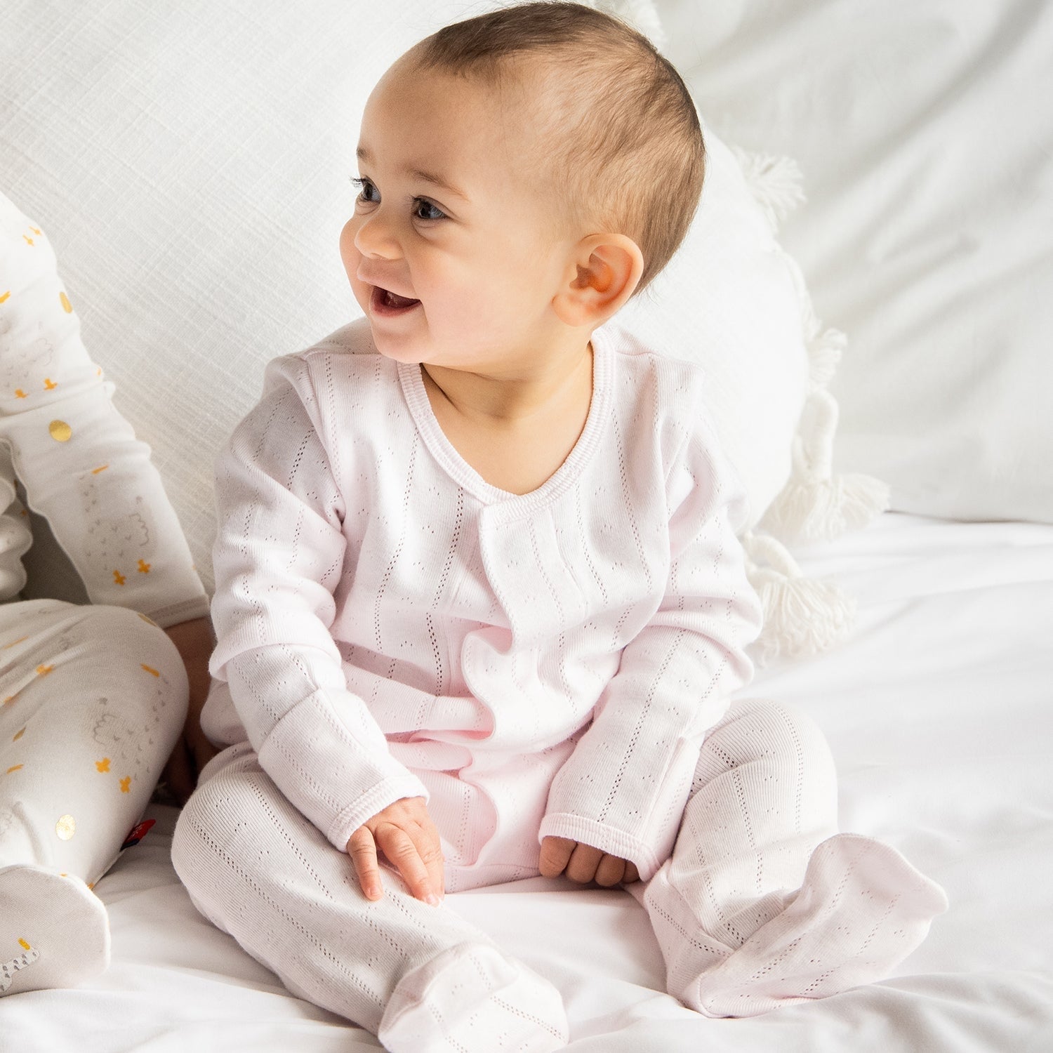 Baby Club Chic Pale Pink Footie with Lace Detail