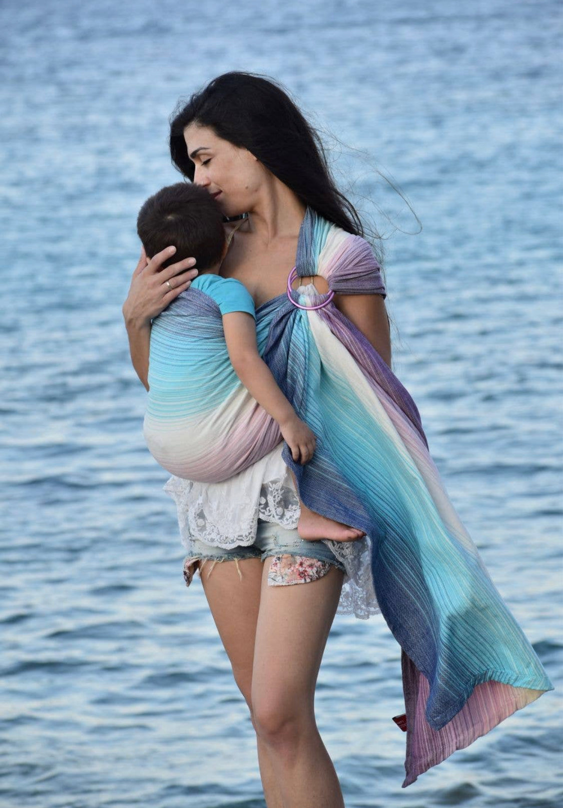 A handwoven one-of-a-kind wrap made of 100% organic cotton. The best baby carrier for newborn as well as for toddler. This highly-versatile carrier can be worn in front, hip, or back and also provides excellent coverage for discrete nursing. May also be used as a hammock, swing, blanket. Each wrap comes with complete 6 position tying instructions. Correctly tied, the baby carrier adapts perfectly and individually to both parent and child.