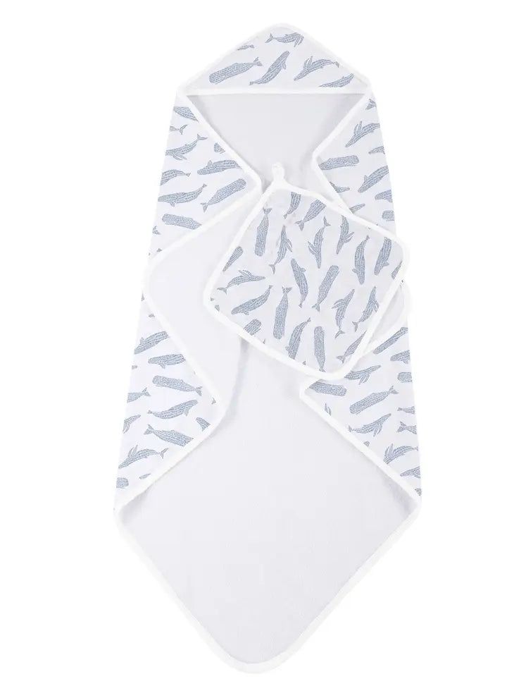 Newcastle Classics Blue Shadow Whales Bamboo Hooded Towel and Washcloth Set