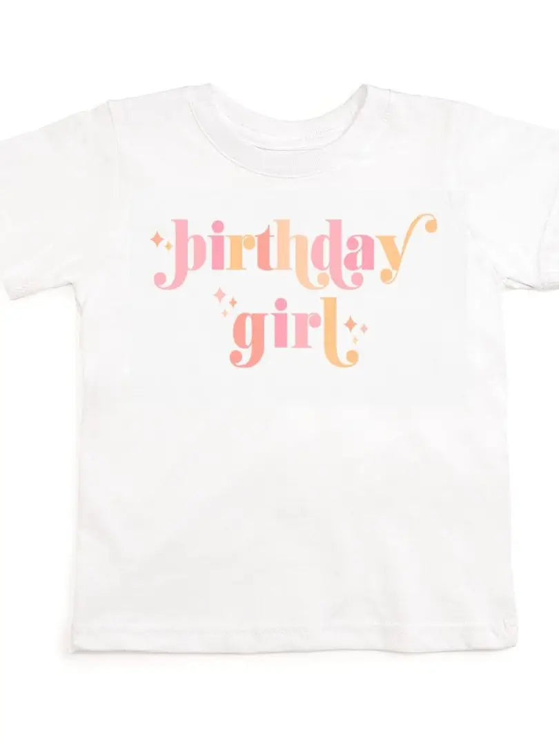 Calling all birthday girls! The Birthday Girl Blush short sleeve shirt is the perfect tee for celebrating the birthday girl! This tee features a beautiful pink and peach tone graphic, on a white shirt.
