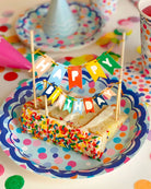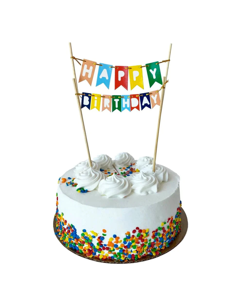 Make any birthday cake a little sweeter thanks to this extra bright and fun pennant topper we designed. Pre-assembled and easy to pop on top of any cake too will make this cute party accessory a must-have!