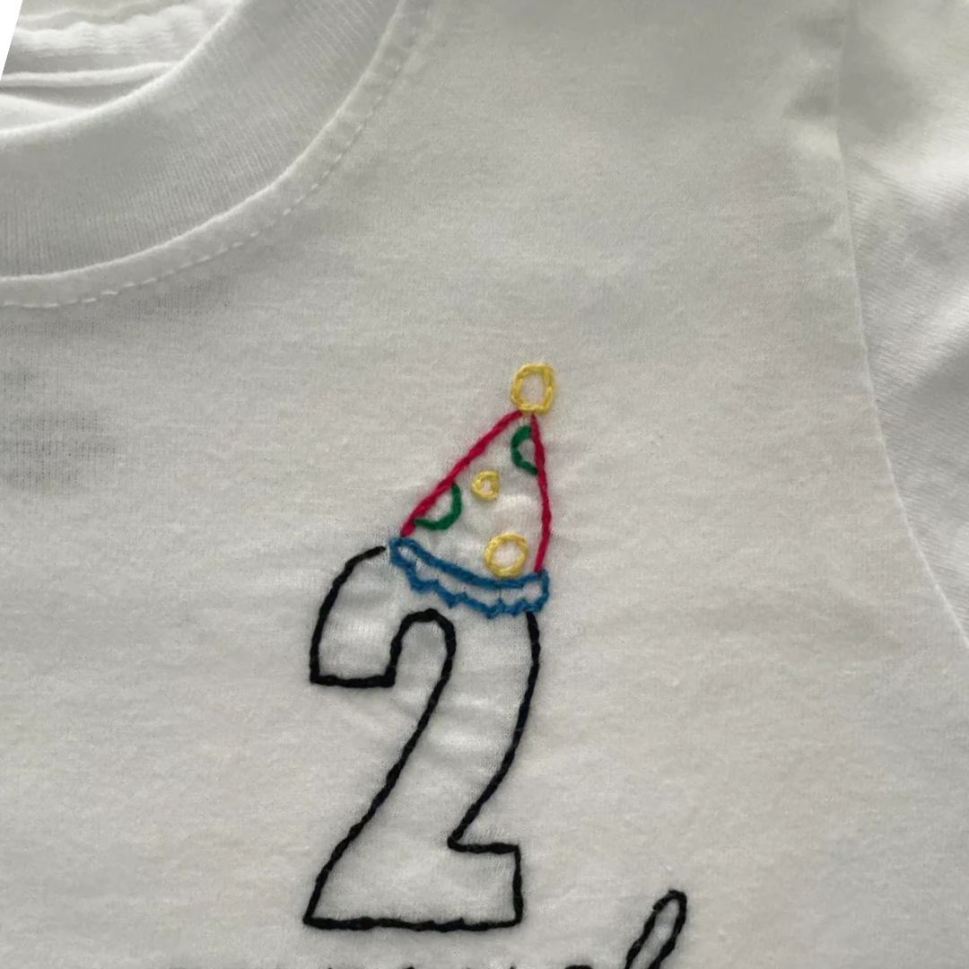 Party Hat Birthday Number Custom Handmade Embroidery - T-Shirt