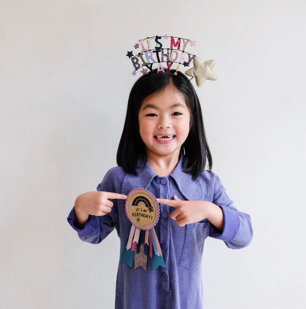 Moonstitch Birthday Girl Hair Bow with Embroidered Motif