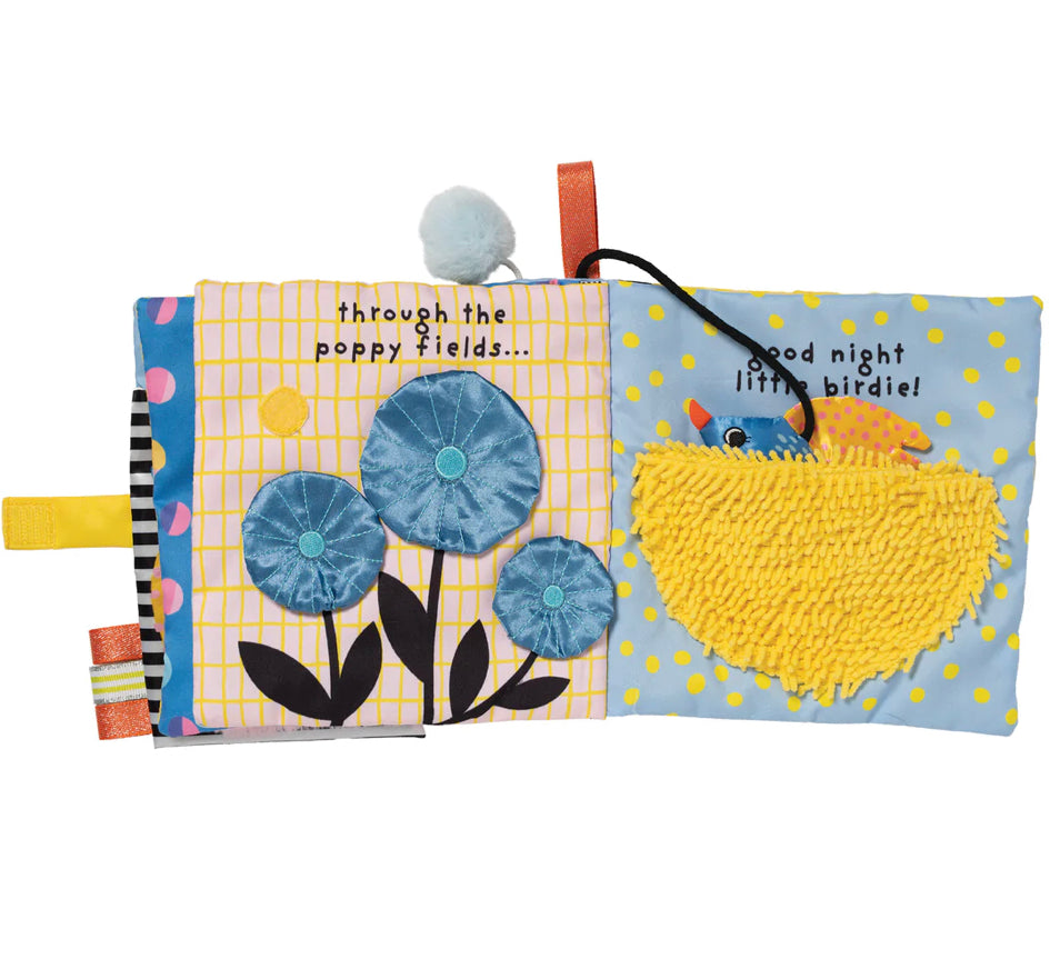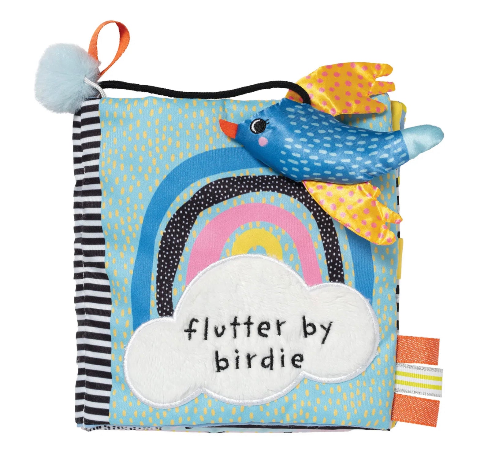 Little ones will have a fun time with the Flutter by Birdie soft book. Featuring 6 pages of follow-along fun with a tethered crinkle birdie. Includes crinkle, peek a boo flaps and a pom pom accent, plus loop for attachment to links and closure to keep pages tidy. Inspire your little reader-to-be with this touch and feel baby book from the Cherry Blossom Days collection by Manhattan Toy.