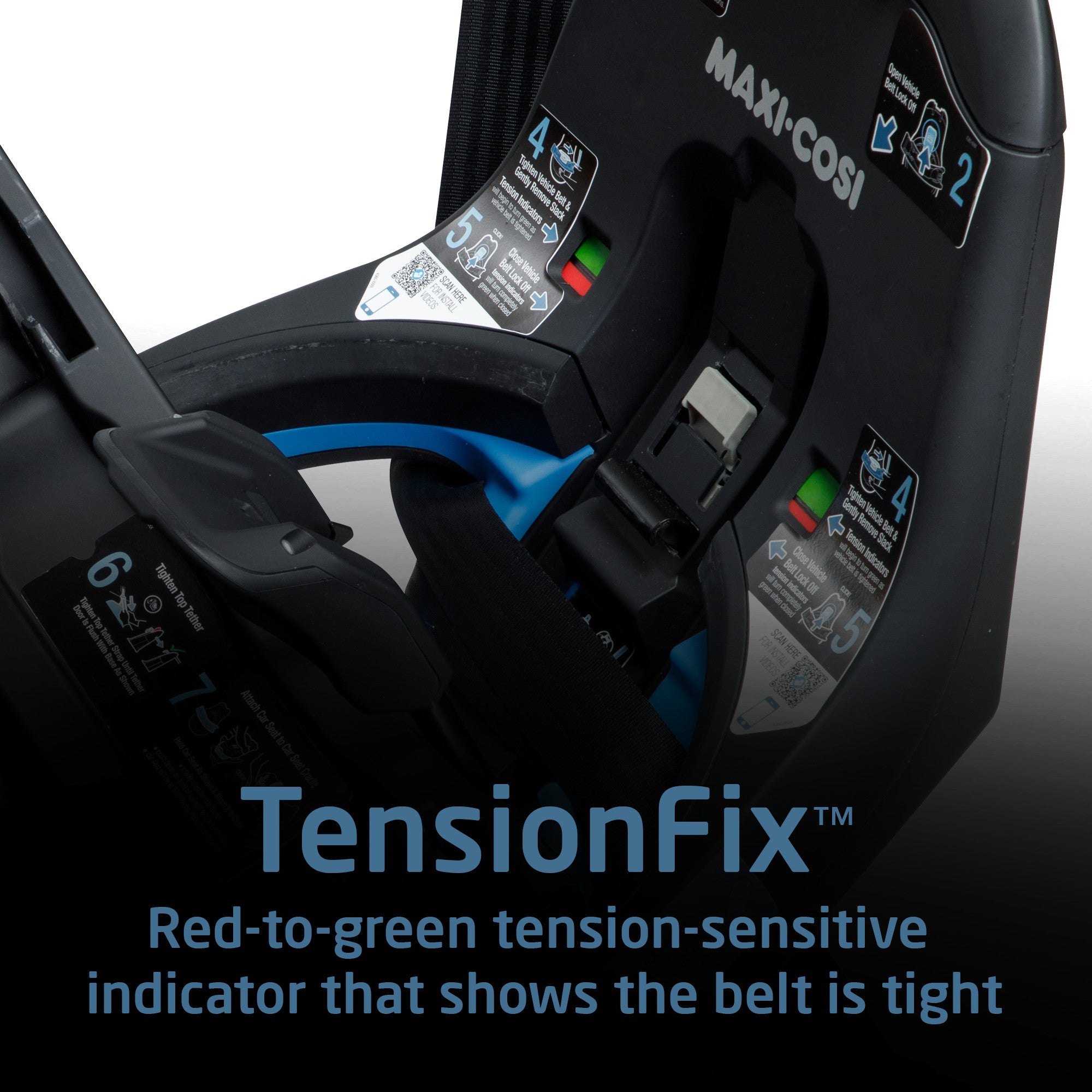 - Maxi-Cosi’s TensionFix, our patent-pending red-to-green tension-sensitive indicator, shows you when your seat belt has tension