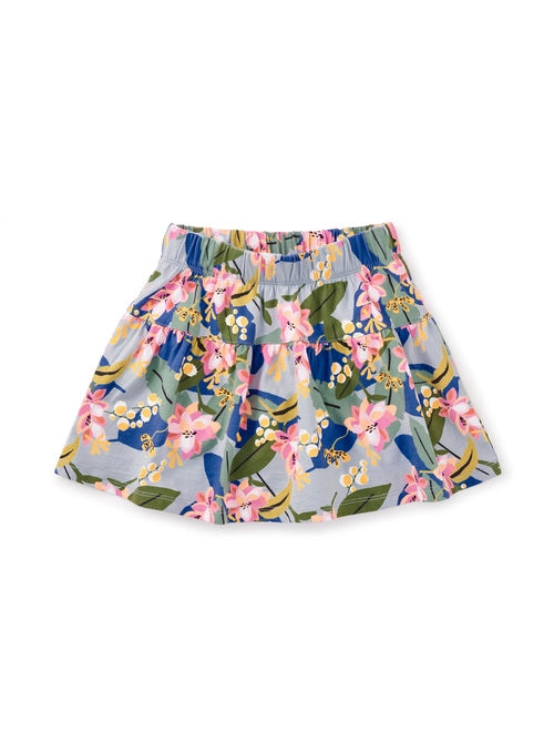 Twirl your heart out in our bestselling tiered skort! Looks like the cutest of skirts, wears like rough-and-tumble shorts. So comfy to wear with an elastic waistband and fitted inner shorts. Crafted of 100% soft cotton, the sun dyed purple print beautifully with a graphic tee or tank. Mid-thigh length.
