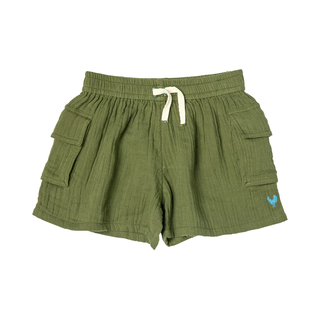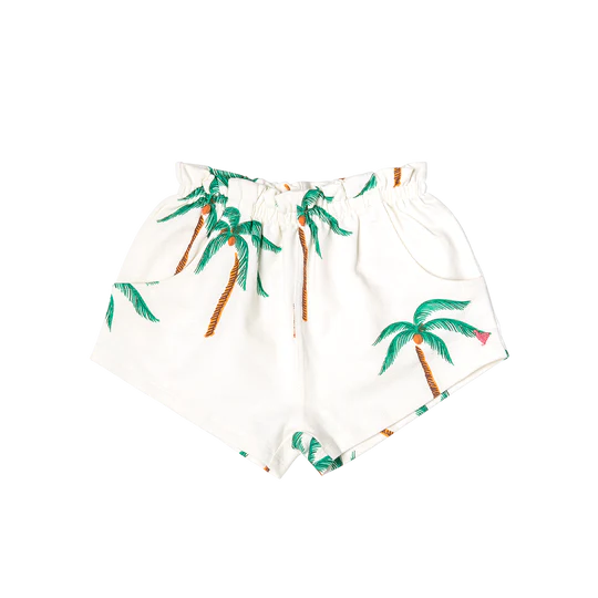 Pink Chicken Girls Organic Theodore Short - Cream Palm Trees