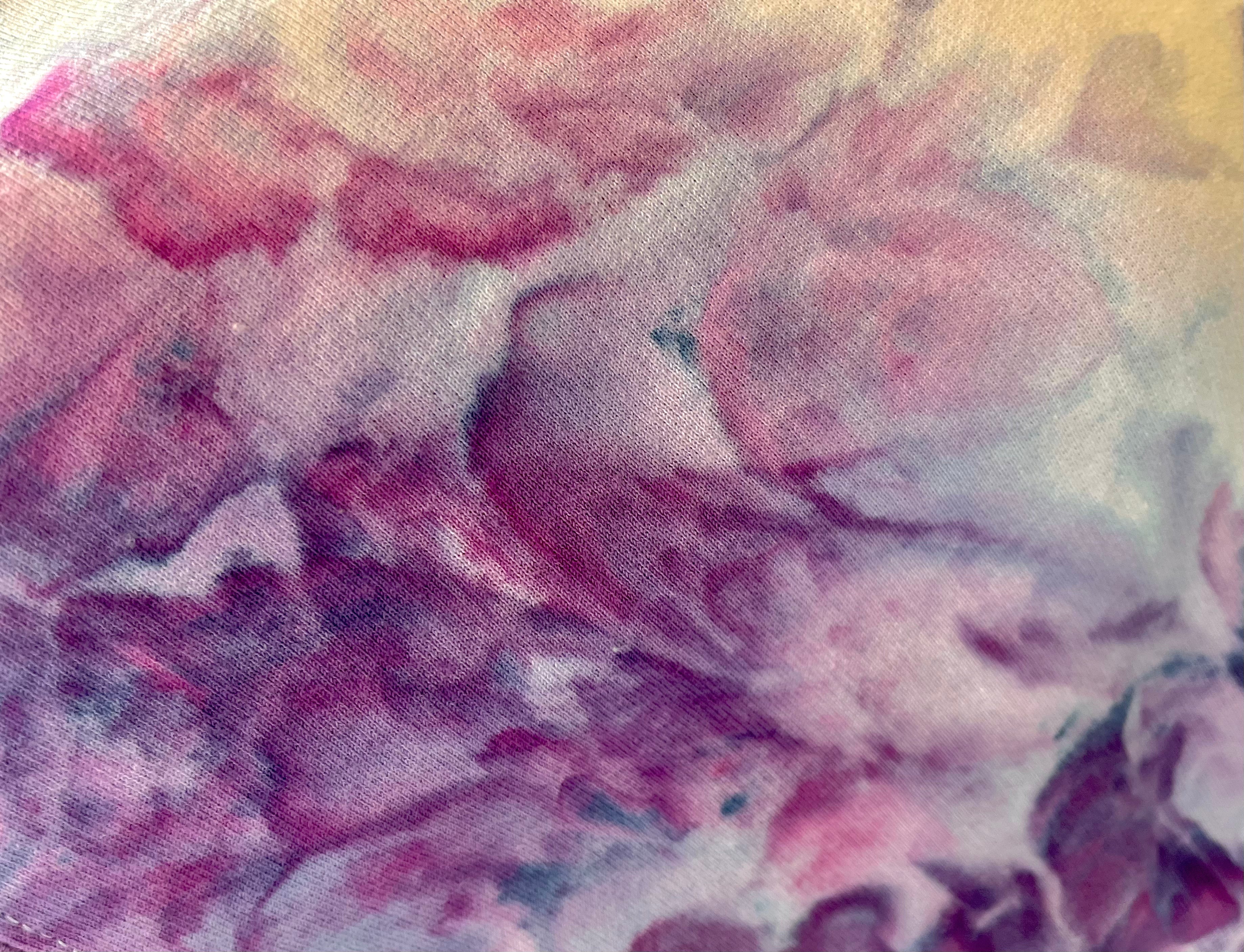 Ice dyed cloth is FULL of surprises. Unlike traditional tie dye, powder dye is sprinkled over ice cubes which makes the dye split and turn into an array of surprising shades. Hours of patience and numerous steps gives ice dye it's gorgeous, ethereal properties. The results are even more stunning in person.