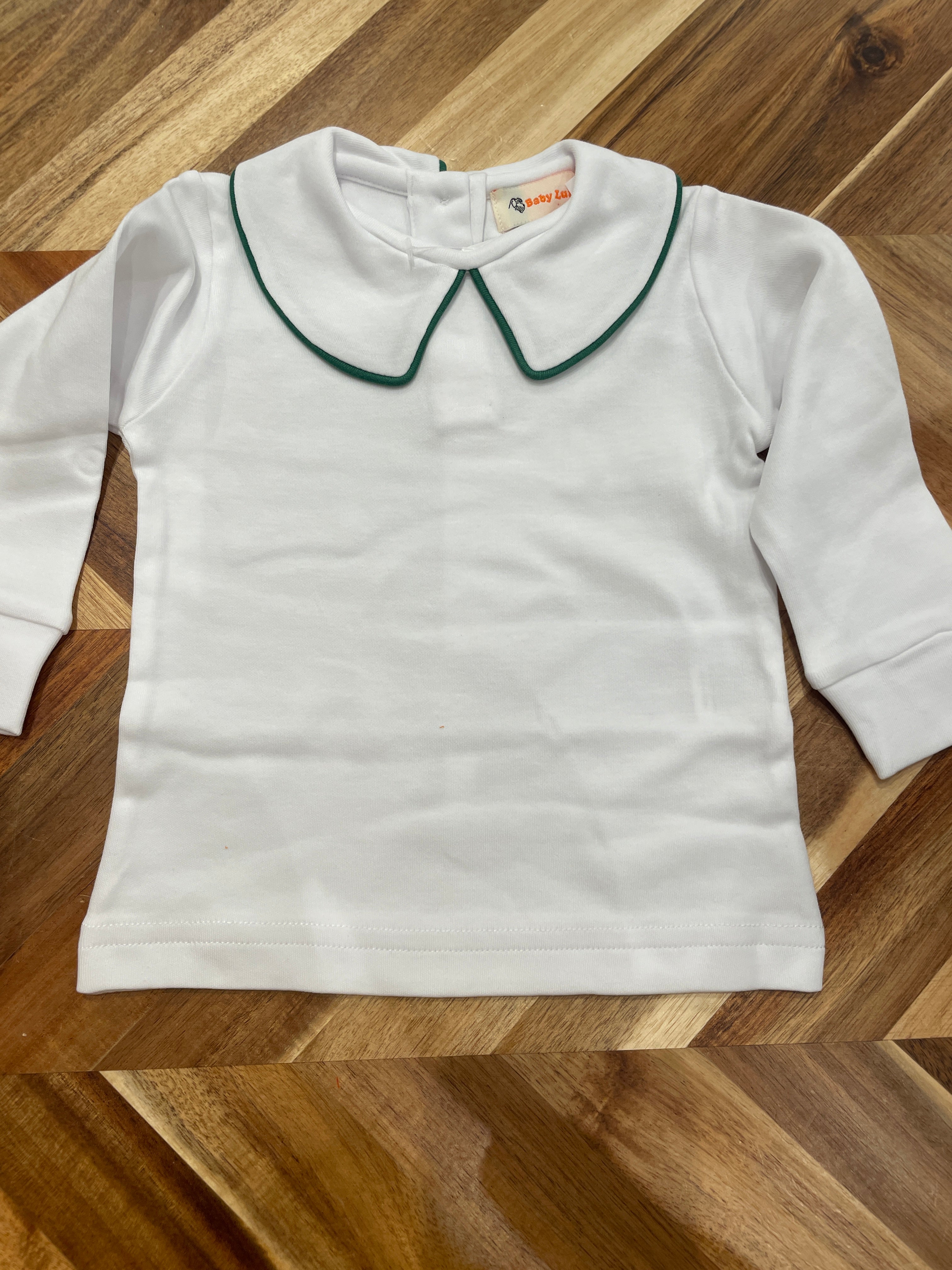 Boy’s Long sleeve Basic Knit top, White with Green piping .