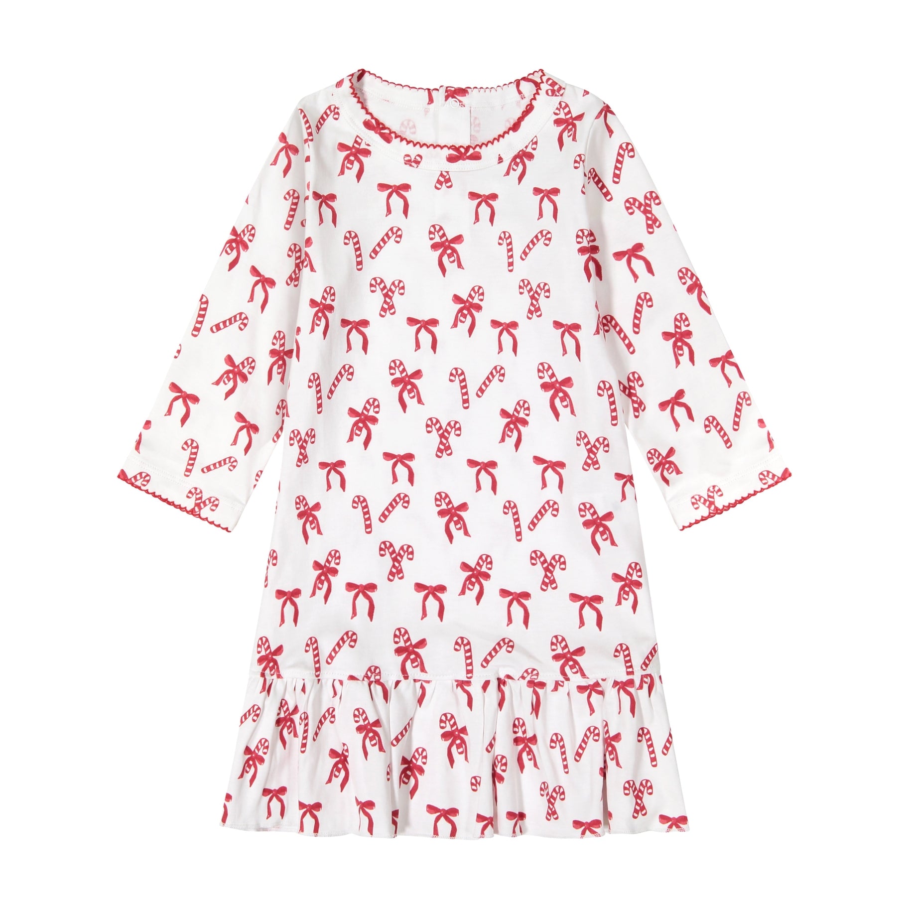This adorable midi dress goes from playground to parties and everything in between. Paper Cape's candy cane print is perfect for the holidays. It's buttery soft, has a midi length (below the knee), and a simple ruffle hem. It is an easy fit so order true to size.