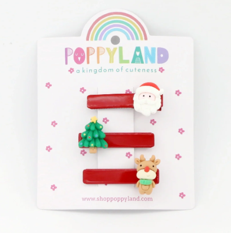 Discover the magic of the season with our North Pole Hair Pins at Poppyland, a kingdom of cuteness. Our North Pole hair pins are fun and festive. Featuring Santa, Rudolph and a tree, these will really get you in the holiday spirit! Perfect for adding a cheerful touch to any outfit, these accessories embody the whimsical charm and quality you’ve come to expect from Poppyland. Get ready to celebrate with style and spread holiday joy everywhere you go!