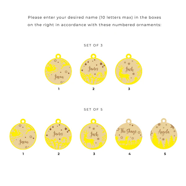 - Please provide name for each ornament, max 10 letters *IN NOTES AT CHECKOUT
