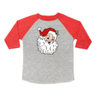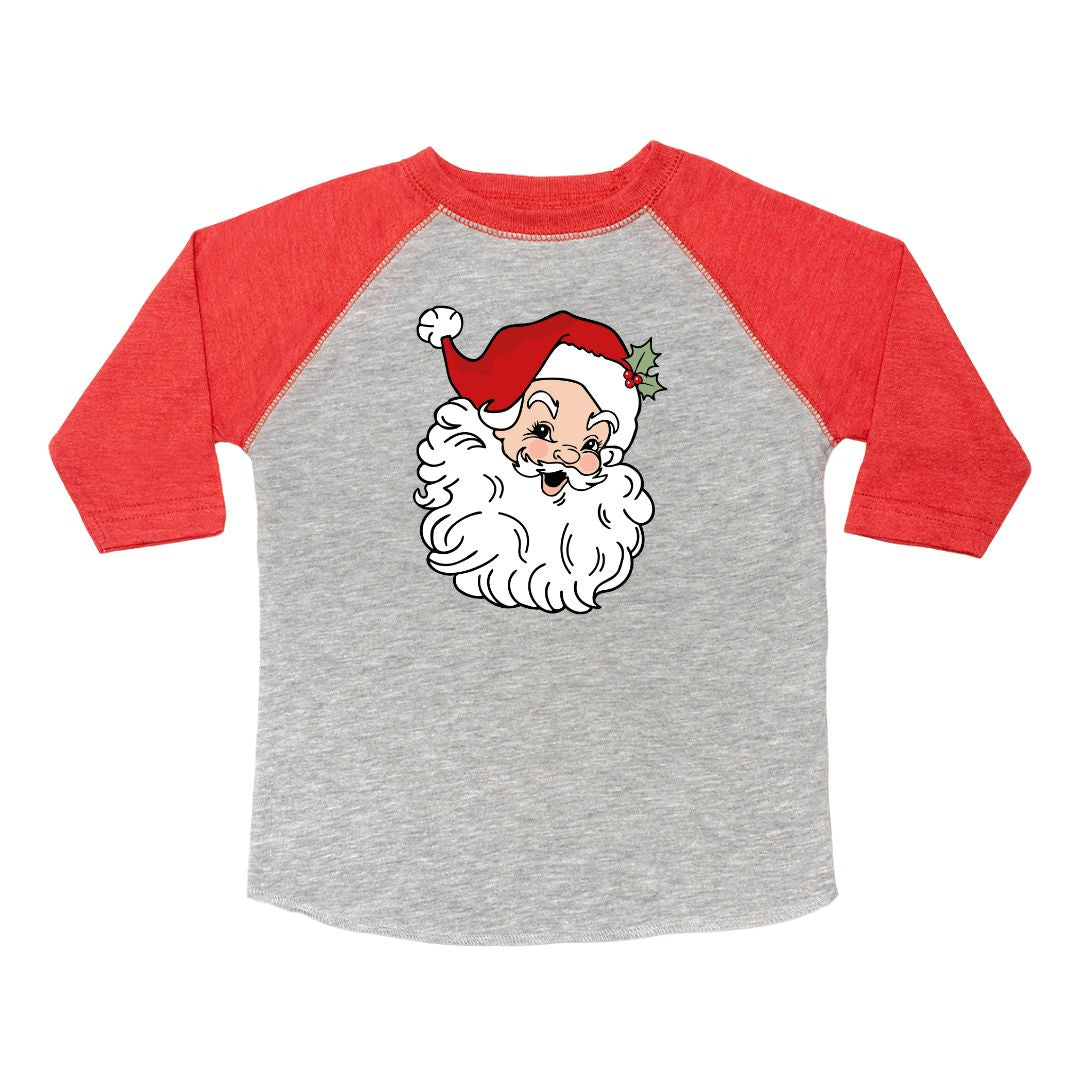 The Retro Santa Christmas 3/4 Shirt is a fun and festive shirt for kids celebrating Christmas! Features: * Shirt Color: Heather Gray with Red Sleeves * Graphic Color: Red, White, Black, Green * Material: 60% Cotton/40% Polyester * Sleeve Length: Three-quarters * Features: Tagless inside neck label for an itch-free wear; super soft cotton jersey fabric * Fit: Toddler Unisex; True to Size * Care: Machine washable, tumble dry low Each shirt is hand pressed with love using baby and child safe inks.