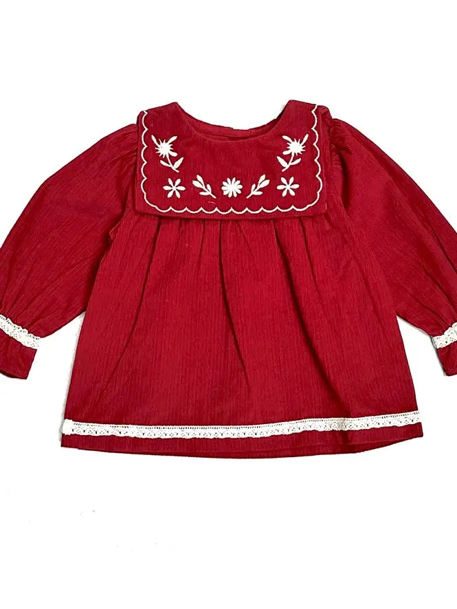 Viverano Organics Sailor Collar Embroidered Corduroy Baby Dress