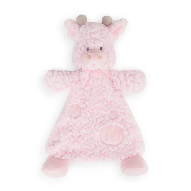 An animal-shaped security blankie. Offers fresh features, including unique fabric textures and rattles, to make blankets unique. Soft, snuggly materials maintain quality and make these plush blankies a timeless favorite. Perfect baby gift. Features a super soft plush fabric with a rattle. Highly recommended for a newborn or baby. Measures 12".