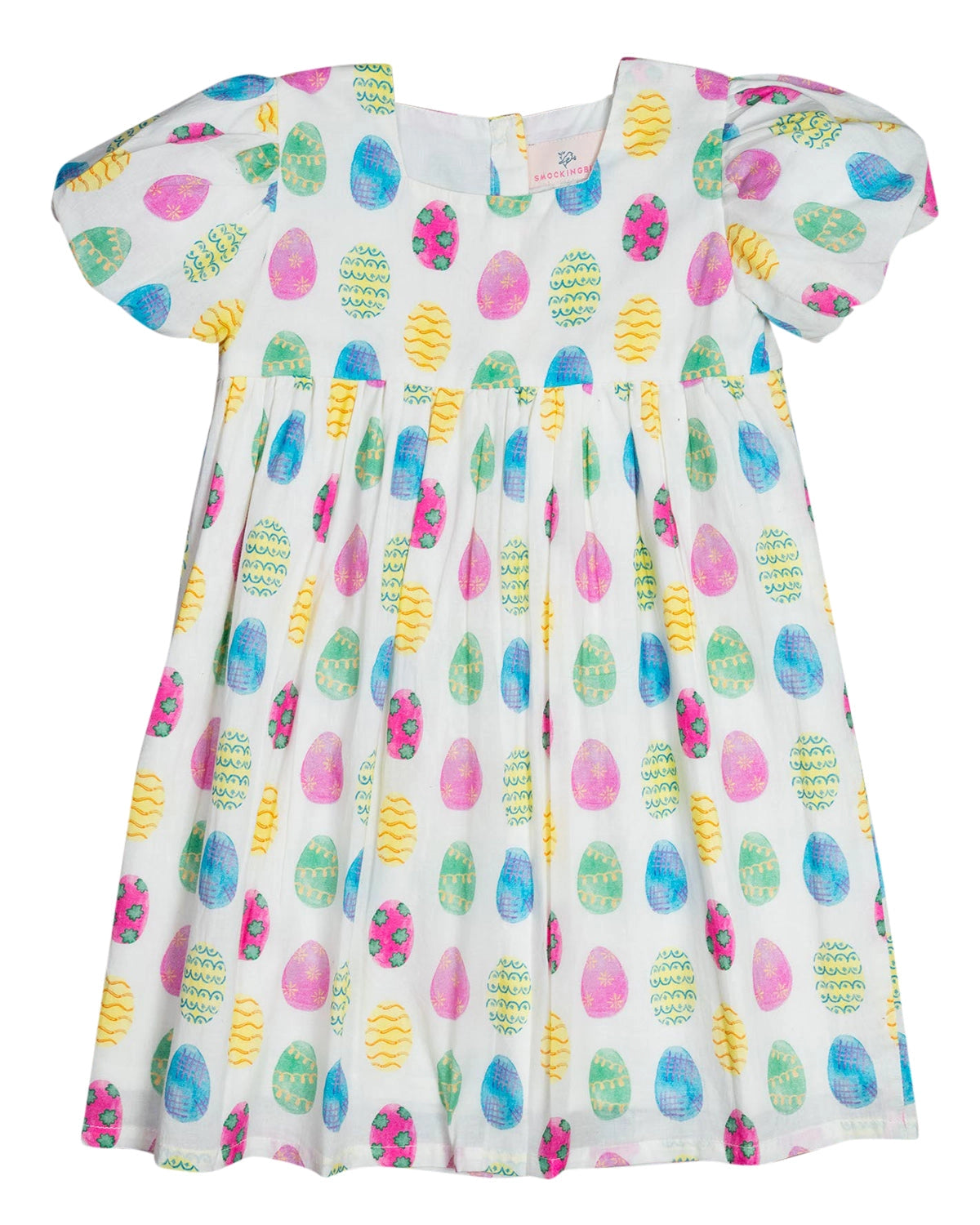 Your little one will be so Egg-cited to wear this Easter Egg Balloon Sleeve Dress. So colorful and festive, this is sure to be a favorite this Spring. Made of 100% organic cotton