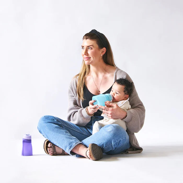 Silicone sippy spout, straw spout + straw included to grow with baby — Our transition sippy pouch with soft spouts helps your baby instinctively regulate the flow of liquid for a natural transition from breast- and bottle-feeding. Straw spouts are recommended to promote healthy oral development as baby grows, and removable straw allows for tilted or traditional straw drinking options.
