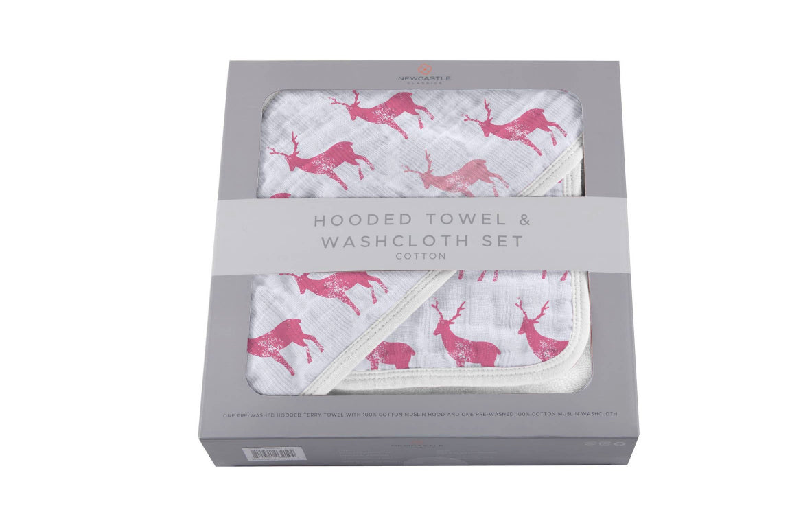 Newcastle Pink Deer Hooded Towel and Washcloth Set