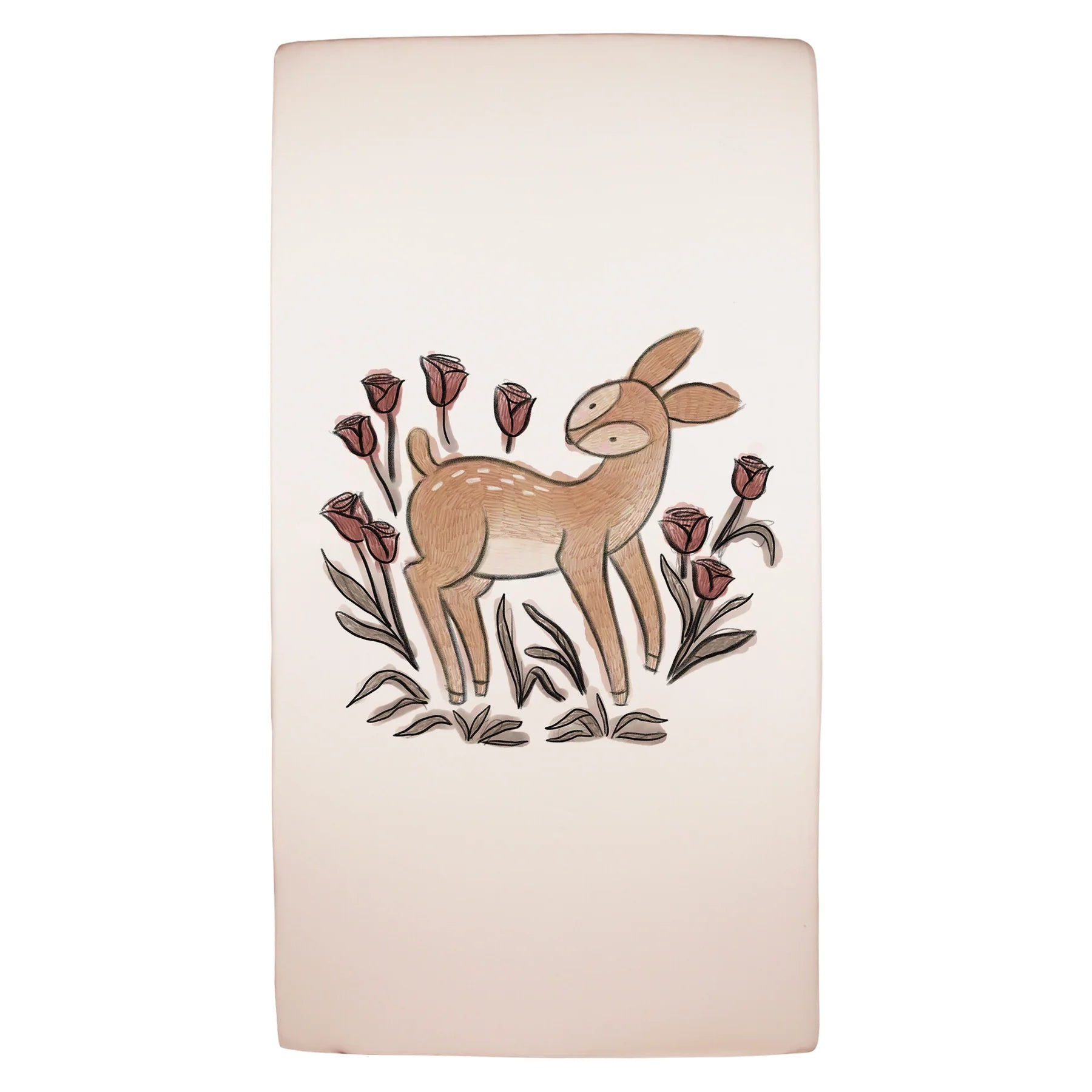 Organic Crib Sheets in Doe-a-Deer Graphic