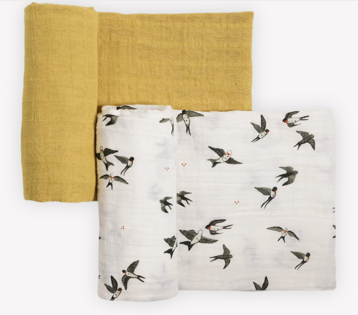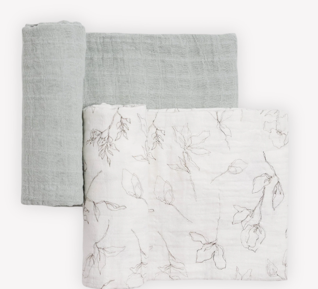 A gift-able and complementary swaddle set made from 100% GOTS certified organic cotton and OEKO-TEX certified. They make a perfect baby shower gift and are a must have for new parents! The breathable muslin fabric makes it great for swaddling, playtime, nursing and on-the-go.