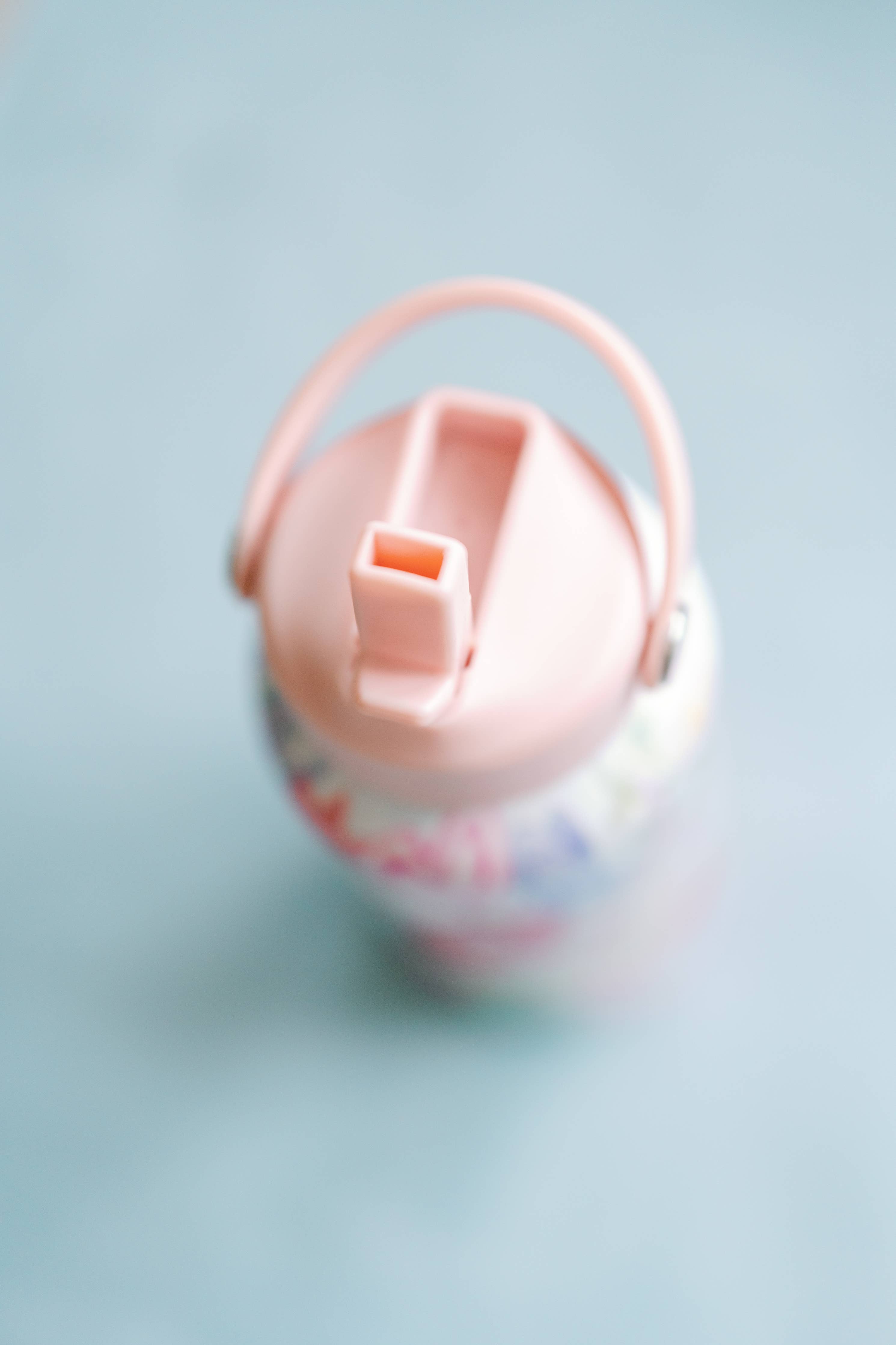 32 ounce triple insulated bottle with wide mouth opening and lid handle.