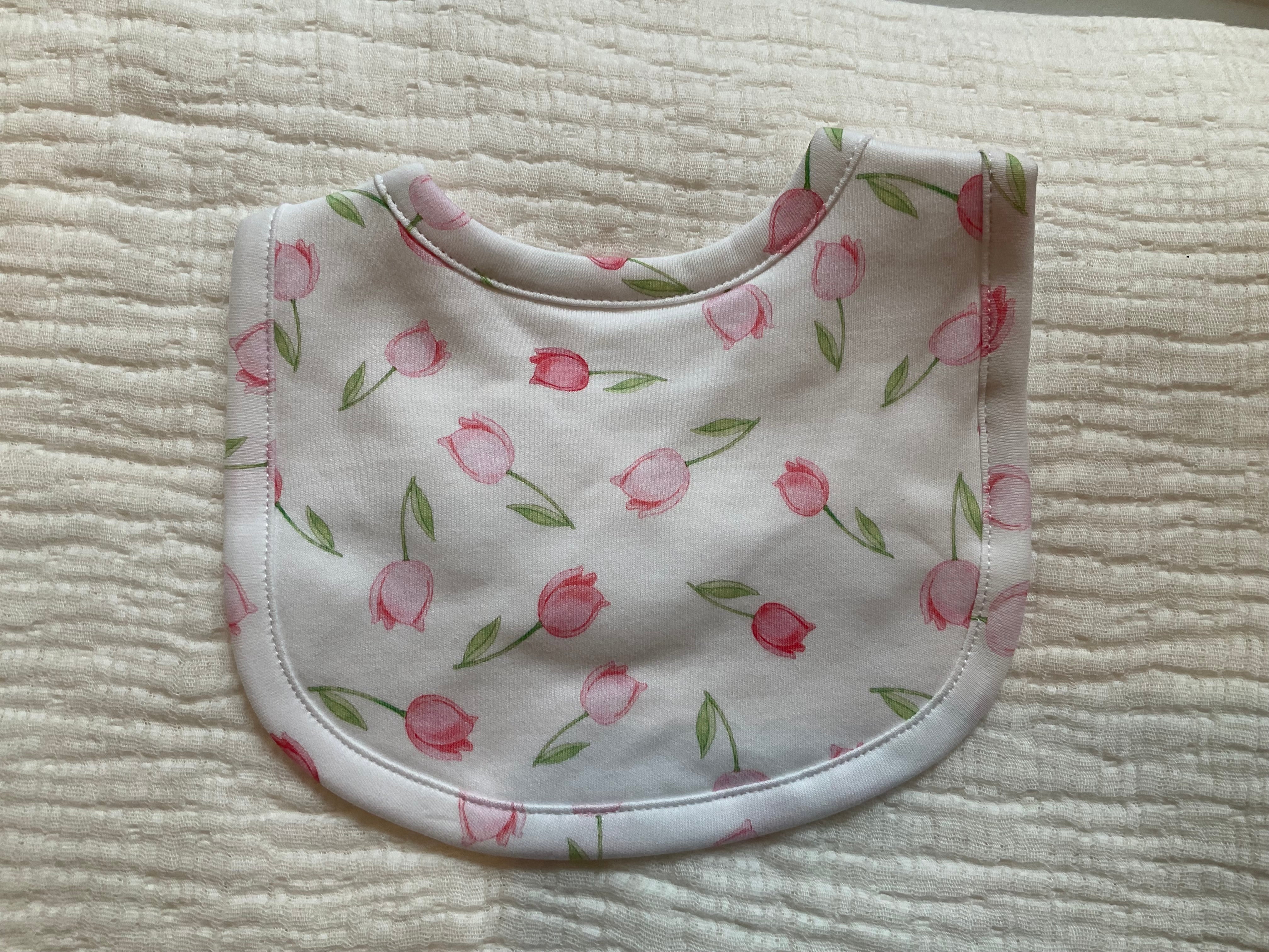 baby tulips pink printed bib