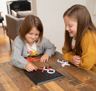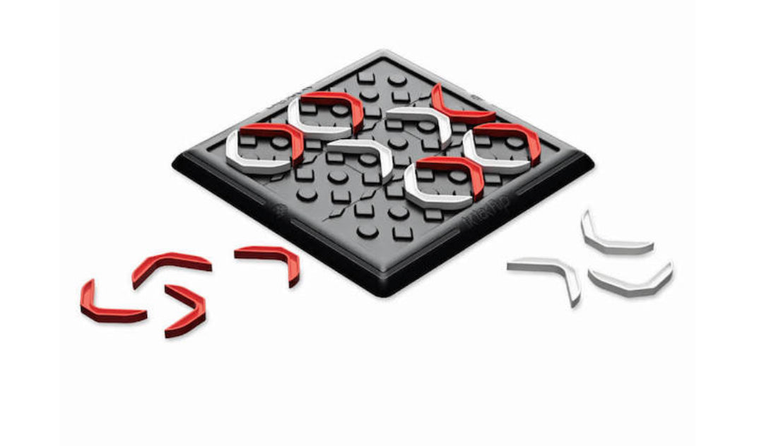 Red is trying to make Xs and white is trying to make Os. Two game pieces - white, red, or both - must be used to make a mark. Your goal is to get three-in-a-row of your mark vertically, horizontally, diagonally, or semi-diagonally. At first, it's just like the original. But then - Play all the game pieces without a win? It's not a cat's game. It's time for phase two! Players take turns flipping their game pieces over in their places. Can you transform what's already there into a winning move? It's going to take a lot more than basic strategy to master this new twist on classic fun!