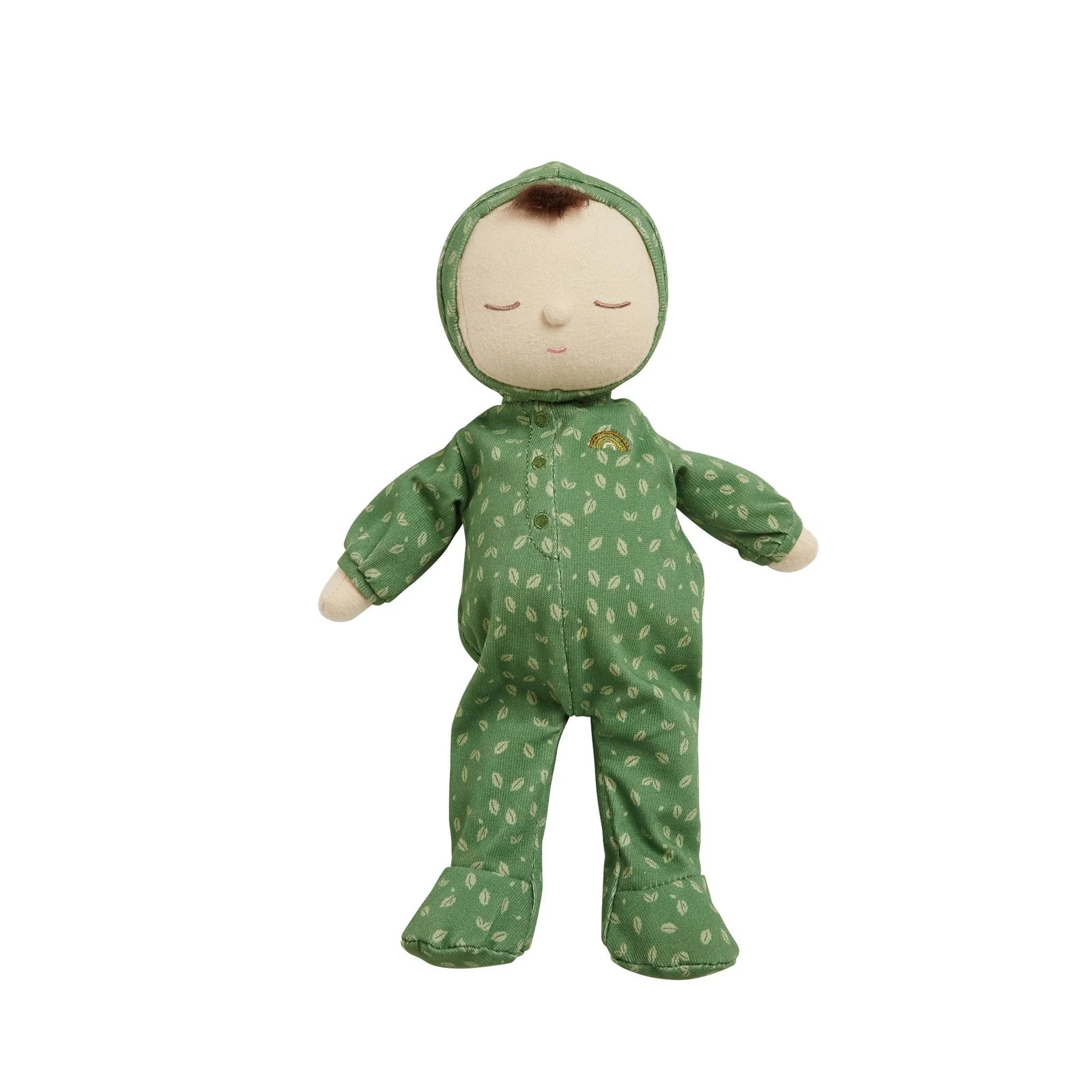 Every detail is carefully embroidered, from their sweet little face to the rainbow right over their heart. Pudding features a tuft of hair and wears a non-removable cotton onesie in our collectable Evergreen print. Dozy Dinkums are gently weighted for added calm and lightweight for little hands, perfect for endless play and cuddles from birth and beyond.