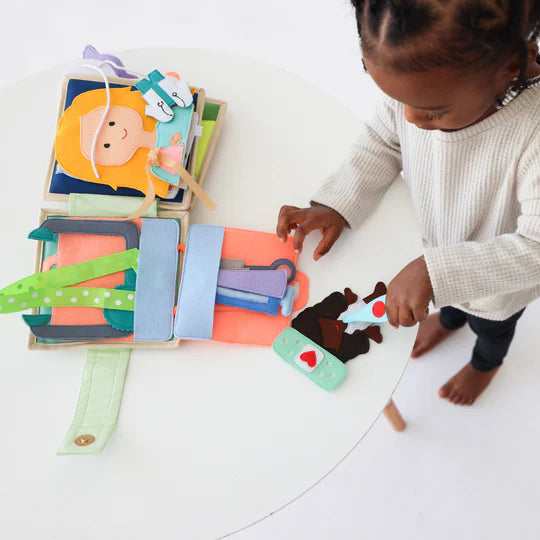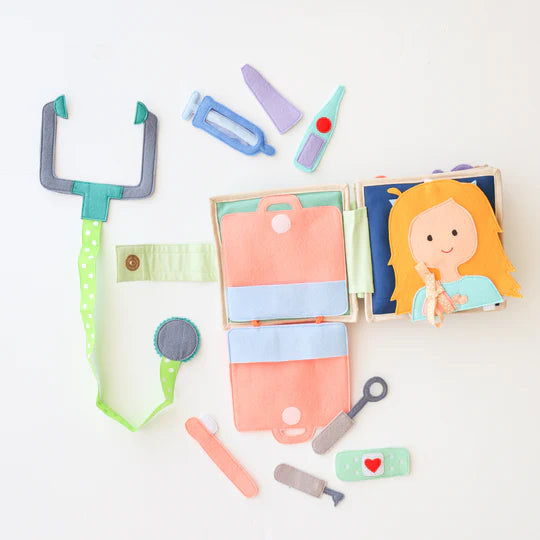 Introducing our comprehensive medical kit, complete with doctor, vet, and dentist tools for endless imaginative play. Dive into various scenarios with dedicated hospital, vet, and dentist pages. Engage in puzzle-solving while using food pieces as patient treats. Develop fine motor skills by threading the happy tooth with healthy food and the sad tooth with moderation foods. Foster routine practice by dressing, feeding, brushing teeth, and tucking the doll into bed. Get ready for a world of pretend medical adventures and skill-building with our extraordinary kit!