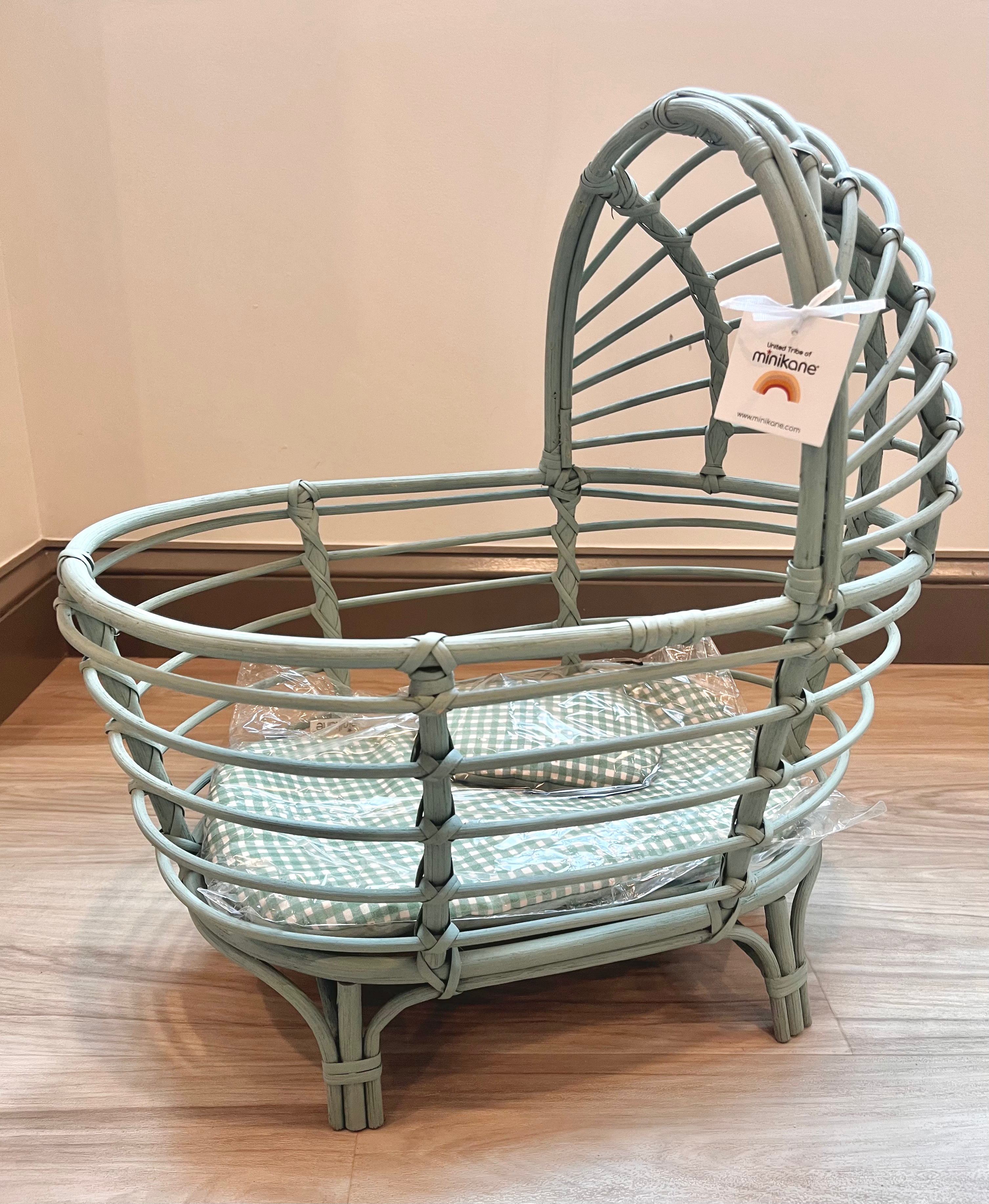 minikane bamboo-rattan cradle for dolls + cotton pad