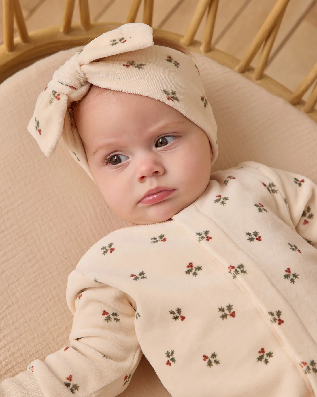 Velour Bow Headband || Holly Berry