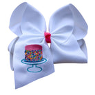 Perfectly Embroidered Hair Bow. This bow is available in 3 sizes. 4 inch with a 2" ribbon width 5 inch with a 2.25" ribbon width 6 inch with a 3" ribbon widthDetails