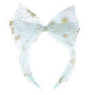 Our shimmering tulle headband is scattered with glittery gold stars and features a beautifully oversized bow. Designed to provide a comfortable fit for little heads, it's the must have party accessory!